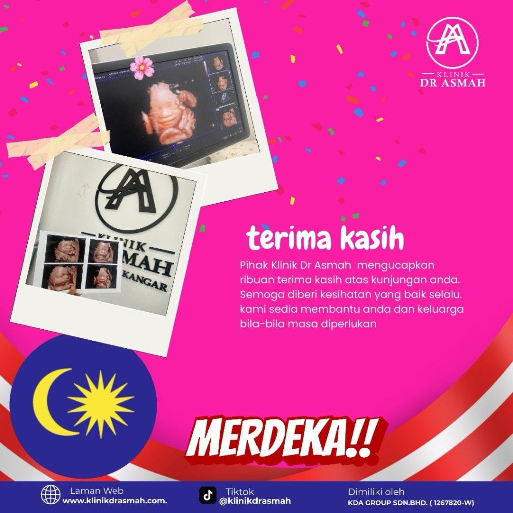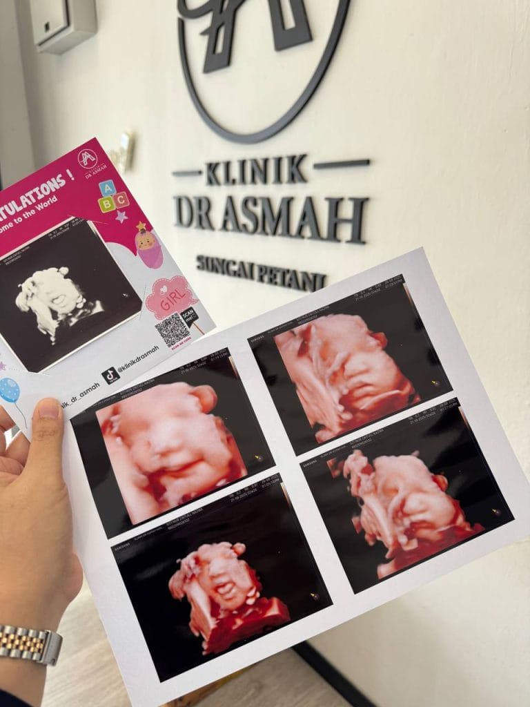 Klinik Dr Asmah menggunakan mesin ultrasound moden yang mampu menghasilkan imej bayi lebih jelas berbanding scan biasa. Inilah detik istimewa yang buat ramai ibu terharu bila nampak wajah & senyuman bayi dalam kandungan.